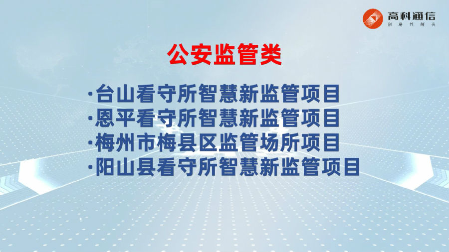 公司簡(jiǎn)介廣州市高科通信技術(shù)股份有限公司成立于1993年,公司圍繞智慧城市、通信接入兩大業(yè)務(wù)板塊,集自主研發(fā)、解決方案設計、生產(chǎn)制造、銷(xiāo)售服務(wù)于一體,致力為政府信息化部門(mén)、政法委、公檢法等相關(guān)部門(mén)以及國內三大運營(yíng)商、國外運營(yíng)商提供頂層規劃設計、方案解決和定制服務(wù)。在智慧城市領(lǐng)域,高科承建了300多個(gè)項目,全面覆蓋公共安全、平安城市、雪亮工程、智慧交通、信創(chuàng )、部隊、教育、金融等。近年來(lái),公司深耕公安智慧新監管建設,推出智慧新監管全要素全流程數字化解決方案,全面賦能公安監管一體化應用與實(shí)戰業(yè)務(wù)支撐。高科通信始終秉承“責任、抱負、激情”核心價(jià)值觀(guān),肩負成為“第一公里接入專(zhuān)家及智慧創(chuàng )新及應用專(zhuān)家”使命,不斷推進(jìn)5G、人工智能、大數據、智能感知等核心技術(shù)的產(chǎn)業(yè)落地應用,堅持“創(chuàng )造性解決”的理念,攜手合作伙伴共創(chuàng )數字生態(tài)!